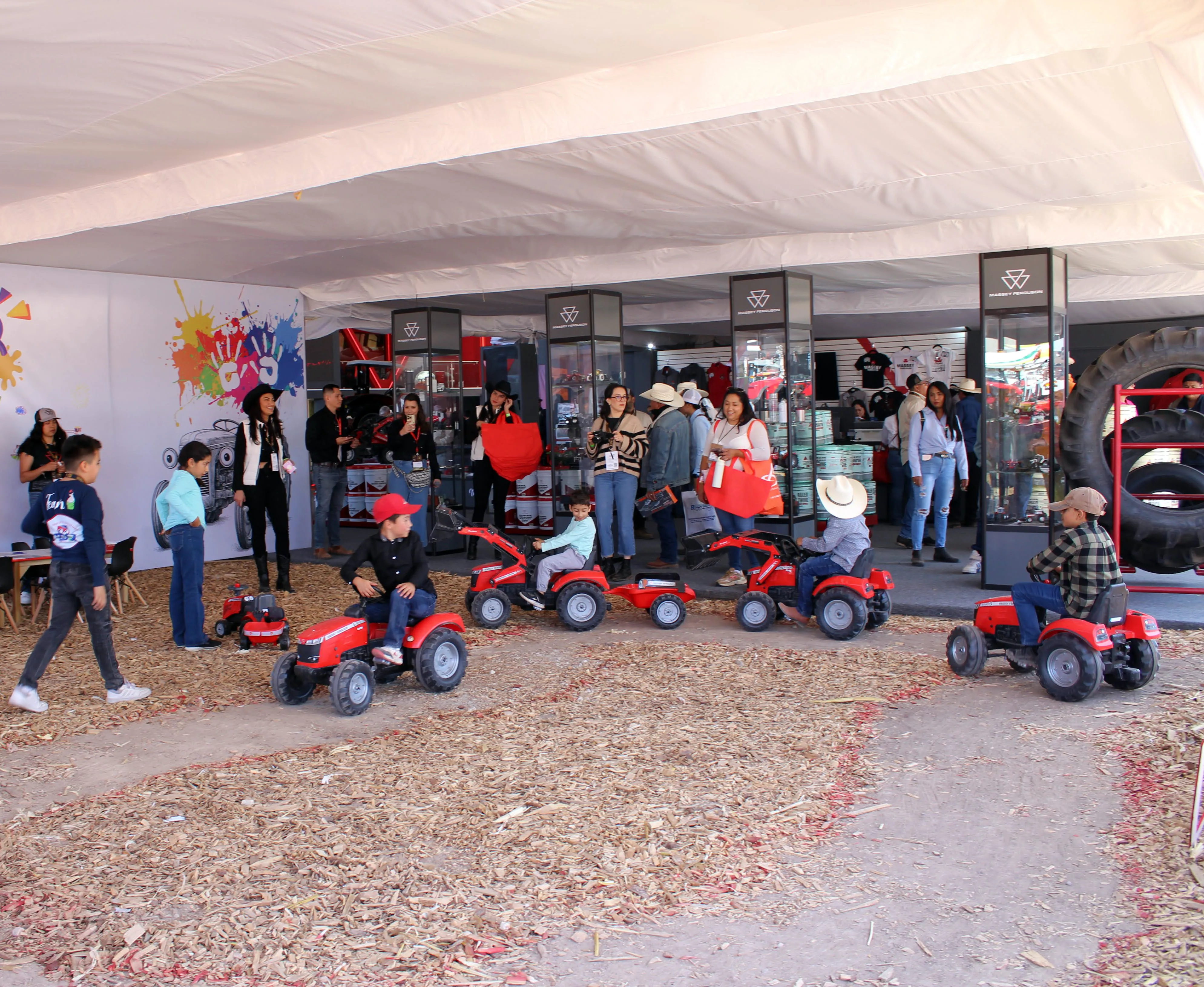 Uno de los grandes atractivos fue nuestra Massey Shop, donde los visitantes pudieron adquirir artículos oficiales de la marca y refacciones a precios especiales, además del área infantil Massey Kids, un espacio creado especialmente para que los más pequeños se divirtieran mientras descubrían el mundo del campo de manera creativa y segura. Estos espacios reforzaron el compromiso de Massey Ferguson con las nuevas generaciones y con la comunidad que acompaña al campo día con día.